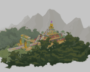 Temple Q for Quetzalcoatl This colorful stone structure is the gateway to the first sub-world on Argus. Statues guard